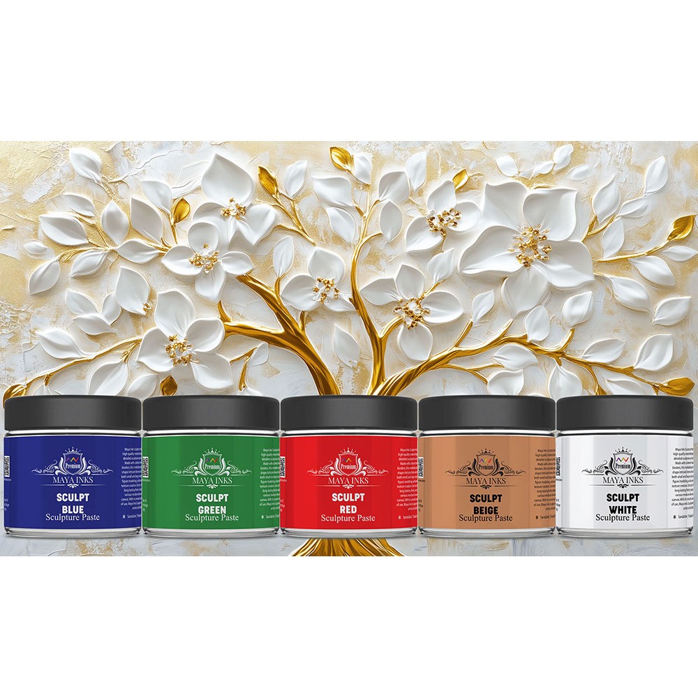 Unleash your creativity with the Maya Inks Sculpt Sculpture Paste Set of 5 Colors – 100 gm Each. This set offers a selection of 5 premium colors: Red, Blue, Green, Beige, and White. Designed for creating 3D textures, this modeling paste is perfect for artists, crafters, and DIY enthusiasts looking to add depth and dimension to their projects.